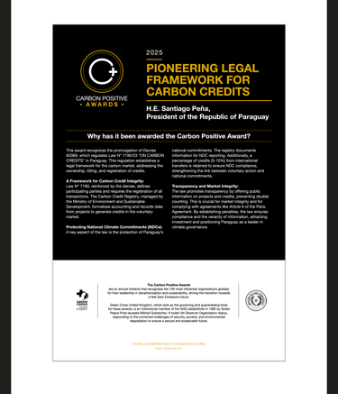 Carbon Positive Awards recognise the 100 most impactful organisations leading the transition to a decarbonised economy within compliance and voluntary carbon markets.