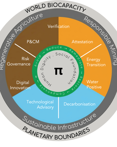 Regenerative Agriculture: Restoring the natural capital that extraction has depleted. Decarbonisation and water positive are design requirements here — embedded in soil health, biodiversity, and food security as a single system.